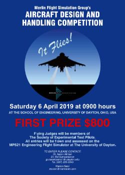 On Saturday, 6 April 2019, the Great Lakes Section of Society of Experimental Test Pilots supported a University of Dayton hosted IT FLIES aircraft design competition for students using their engineering flight simulator.